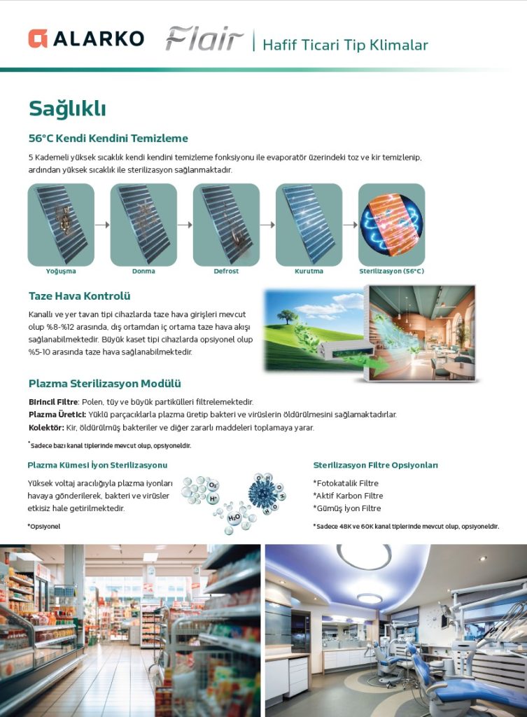 Flair, klima kapatıldıktan sonra dahi fanların bir süre daha çalışmasını sağlayan kendi kendini temizleme özelliğine sahiptir. Fanlar çalışarak iç ünite ısı değiştiricisinde biriken nem uzaklaştırılır, ısı değiştiricinin temiz kalması sağlanır. Küf kokusu engellenir. Havanız her daim temiz ve sağlıklı kalır.